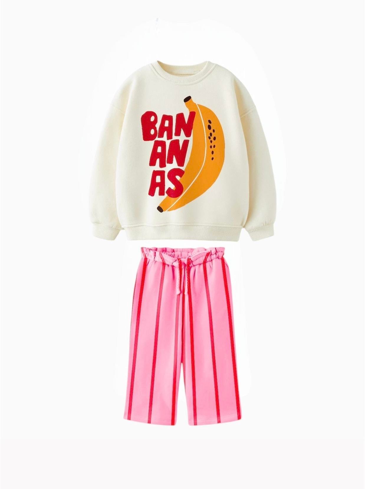 Kız Çocuk Baskılı 3 İplik Kanvas Pantolonlu Takım