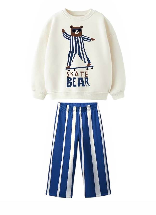 Erkek Çocuk Baskılı 3 İplik Şardonsuz  Kanvas Pantolon Takım