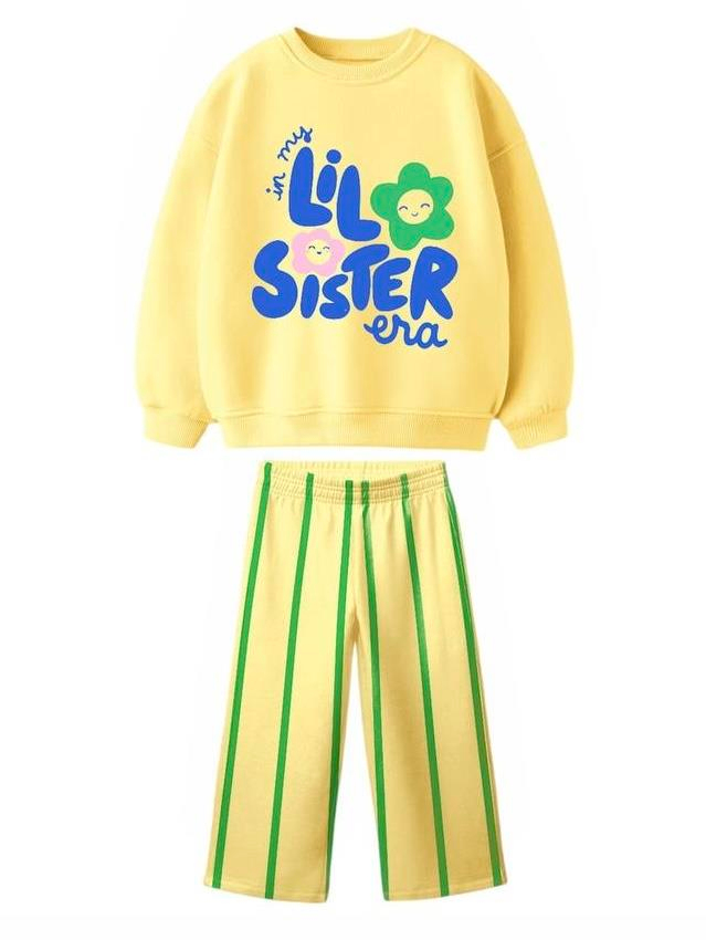Kız Çocuk Baskılı 3 İplik Şardonsuz  Kanvas Pantolon Takım